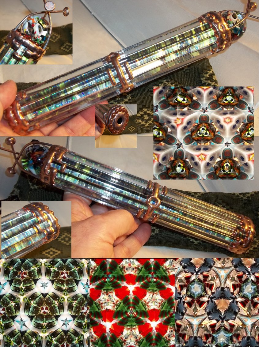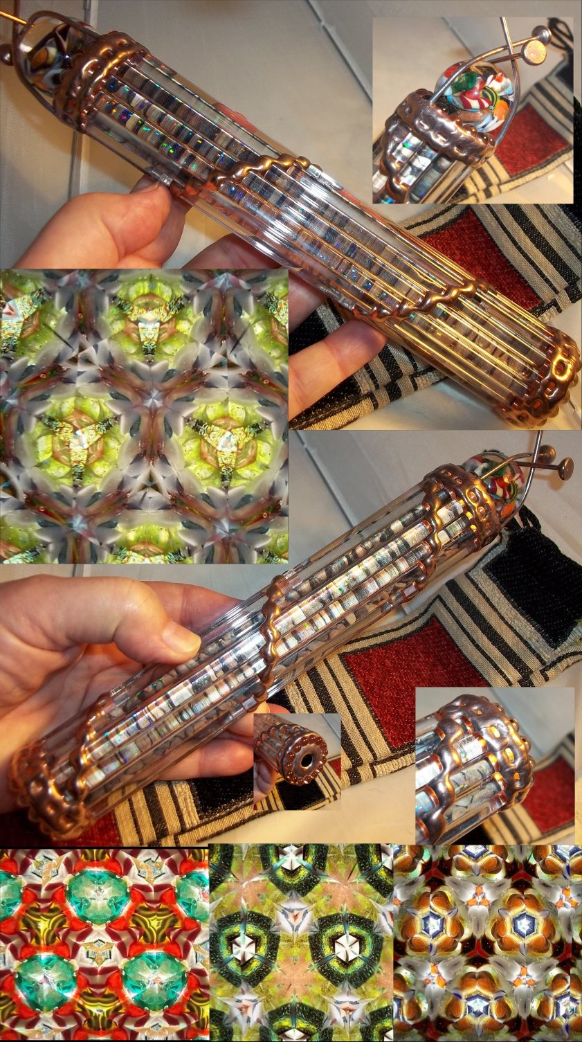THE FOLLOWING KALEIDOSCOPES CAN BE MADE AVAILABLE @ $145.00 EACH Blasted {FROSTED} Scopes Are $175.00 INCLUDES THE MARBLE AND A PROTECTIVE BAG (sac) AND FREE SHIPPING WITHIN WITHIN THE CONTINENTAL USA! All Backgrounds are covered With A Holographic Spotted Sheet That Reminds Me Of A Psychedelic Light Show Unless Noted As Sparkling Which Is Like Glitter