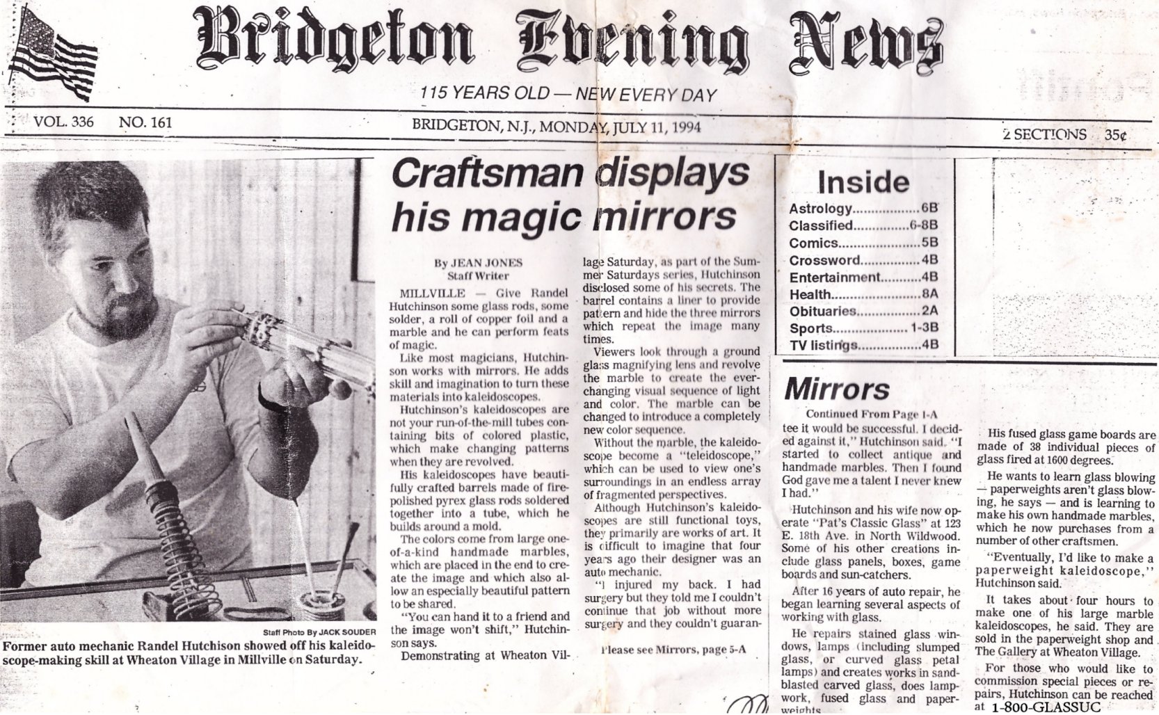 KALEIDOSCOPE NEWS PAPER ARTICLE From Wheaton Village Museum of American Glass, Millville NJ.